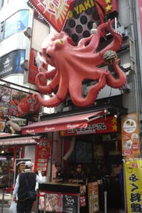 Takoyakis, literally “grilled octopus”, are an Osaka specialty in the form of balls containing pieces of octopus. Generally, takoyaki is sold in yatai stalls facing the street to be taken away or eaten outside.